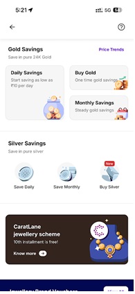 Step 1: Open the PhonePe app, scroll down to Gold & Silver and tap on “More”