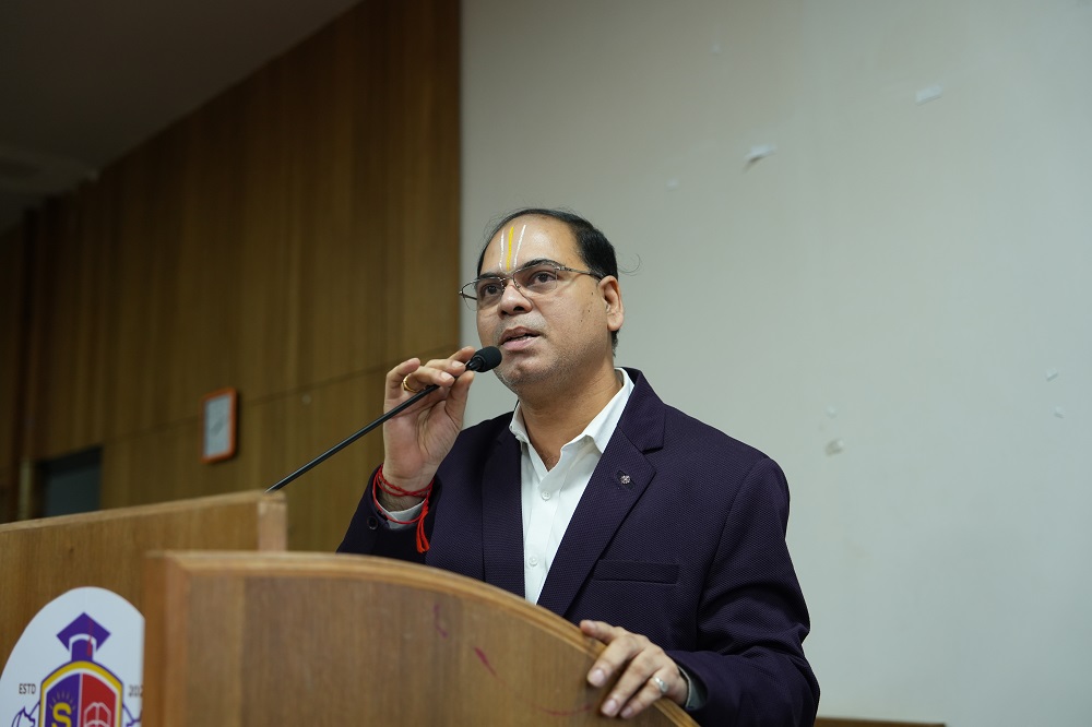 The ceremony was inaugurated with the traditional lamp-lighting by Param Pujya Swami Dr. Premswaroopdasji, President of Swaminarayan University; Swami Bhaktavatsal Swamiji, Vice President; Swami Bhaktinandandasji; the university’s revered saints; Dr. Rupesh Vasani, Vice-Chancellor; Registrar; Deans; senior faculty; and eminent industry experts. The event also witnessed the presence of nodal officers Mr. Shyam Sundar Sanathan, Mr. Manish Patil, and Ms. Preeti Vyas.